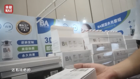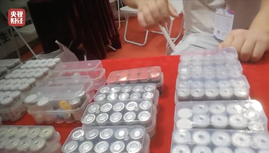 易圣生物科技有限公司,也是医美展会的参展商之一,工作人员向记者展示了几十种他们工厂生产的用于面部注射的美容针剂类产品。