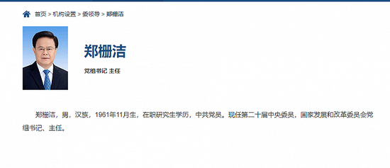 据国家发改委网站更新显示,郑栅洁已任国家发改委党组书记。