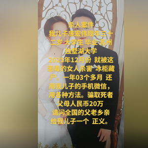 有网友在短视频称,自己32岁的儿子,被妻子杀害并藏尸冰柜,期间还用死者的手机骗取自己20万元。