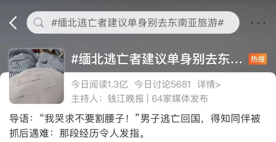 22日,#缅北逃亡者建议单身别去东南亚旅游#登上热搜。