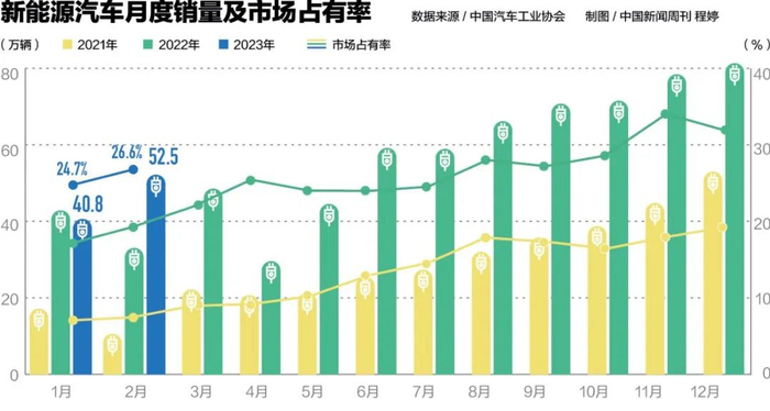 与此同时,国内传统汽车品牌也纷纷宣布了新能源汽车市场的布局计划。长城汽车总裁穆峰向《中国新闻周刊》透露,长城汽车2023年会推出10余款新能源产品,加速向新能源汽车市场的转型。
