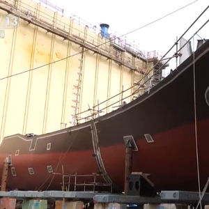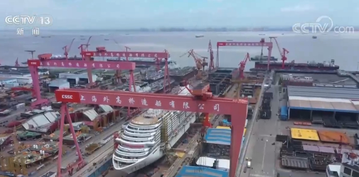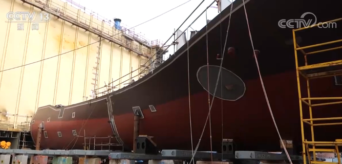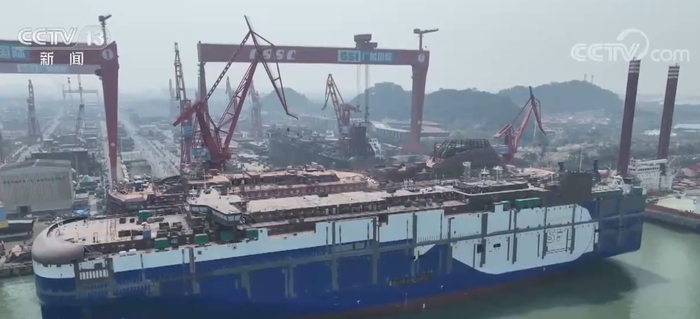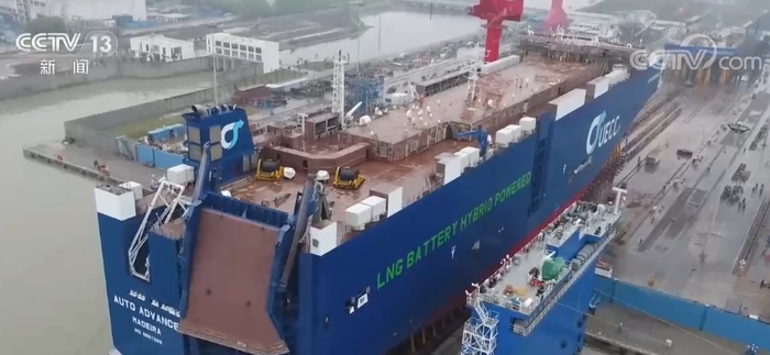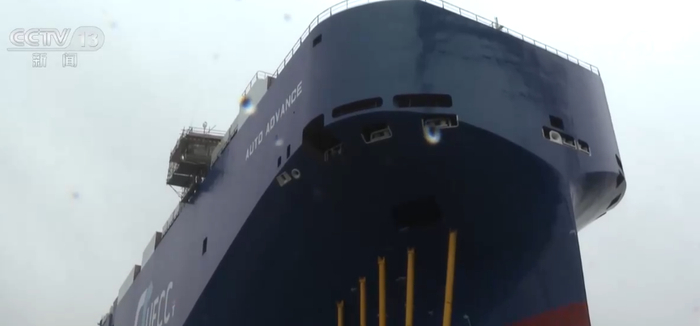总台央视记者 李宁:在中国船舶江南造船,正在加班加点赶制的就是我身边这样的汽车运输船。这个就是7600车汽车运输船的尾段,这艘船也是目前江南造船在建的最大的一艘汽车运输船。
