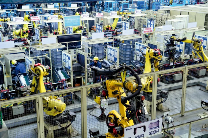 工作人员在特斯拉上海超级工厂内作业。图/新华