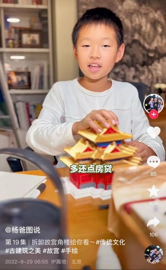 现在,他也在科普分享时坚持着这样的初心。在抖音联合少年儿童出版社共同推出的《十万个为什么》系列短视频中,杨爸几乎包揽了中国古代建筑部分。天安门是什么建筑形式?中国佛寺与印度佛寺是一样的吗?为什么江南园林那么小巧玲珑?每一个选题,他都翻阅尽可能多的资料,确保每一句话都经得起推敲。
