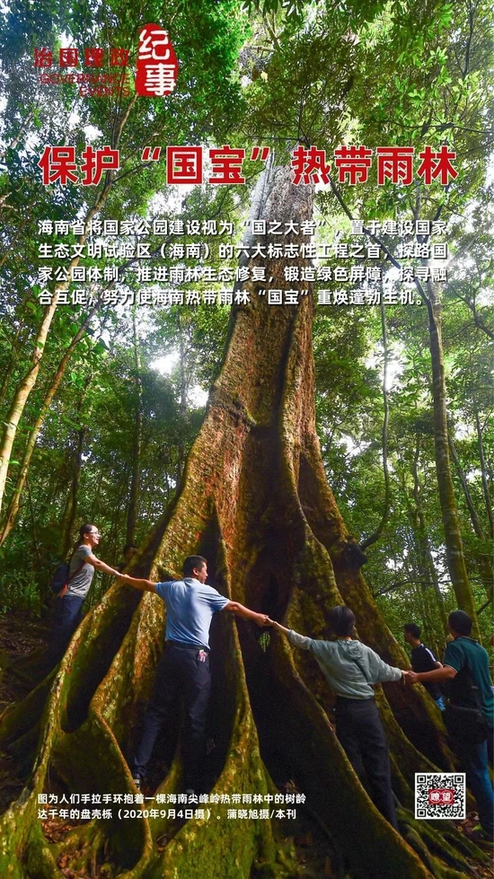 ◆ 牢记总书记的嘱托,海南省将国家公园建设视为“国之大者”,置于建设国家生态文明试验区(海南)的六大标志性工程之首,探路国家公园体制,推进雨林生态修复,锻造绿色屏障,推动融合互促,努力使海南热带雨林“国宝”重焕蓬勃生机。