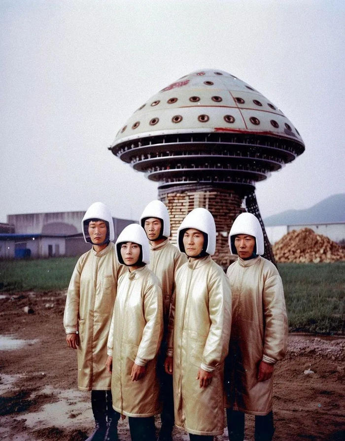 AI绘画:OpenAI CEO山姆·阿尔特曼乘坐UFO,在中国乡村留影。