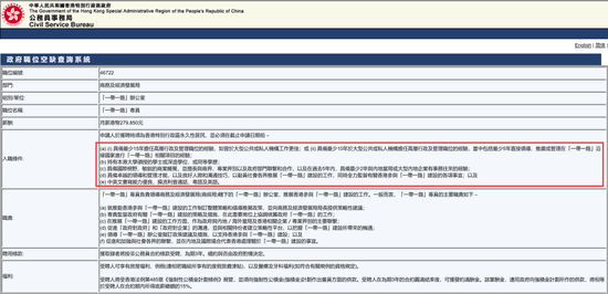 另外还有一个公务员的职位,月薪也接近28万,要求是熟悉内地与香港的营商环境,还需要熟悉“香港的独特角色及对国家政策的贡献”。