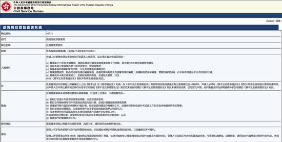 另一个备受关注的职位也是香港商务及经济发展局旗下的,不过这次是个公务员职位,月薪在271800港元到279850港元之间。