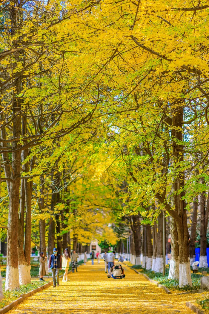 银杏大道上的身影来去匆匆