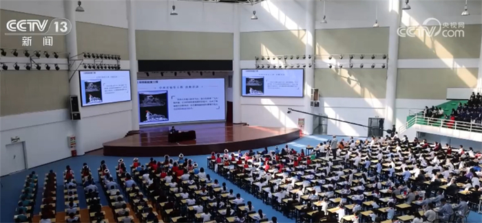 活动现场,杨利伟从载人航天的意义讲起,围绕我国载人航天工程“三步走”发展战略、工程十四大系统、历次任务等方面,图文并茂地系统讲述了中国载人航天三十年间的发展历程与建设成就,结合自身经历生动诠释了航天员“祖国利益高于一切”的信念和载人航天精神,并与现场学生进行交流互动。