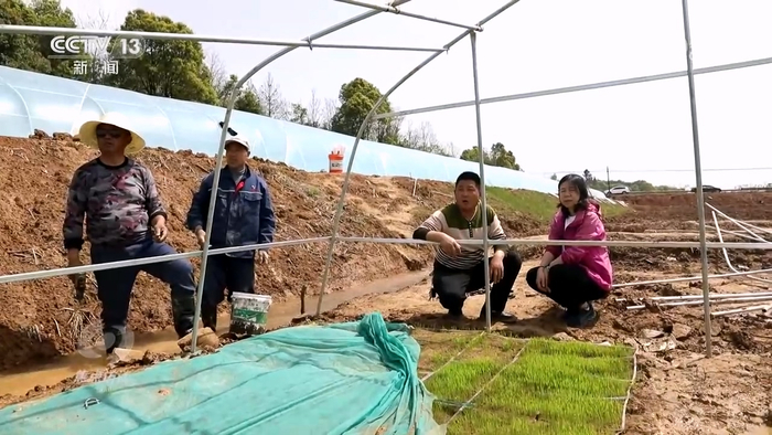 记者来到石桥村时,种粮大户潘宝童正带领几位村民忙着抢修育秧棚,前几天这里下了一场暴雨,将刚刚搭起来不久的育秧棚砸坏了不少。