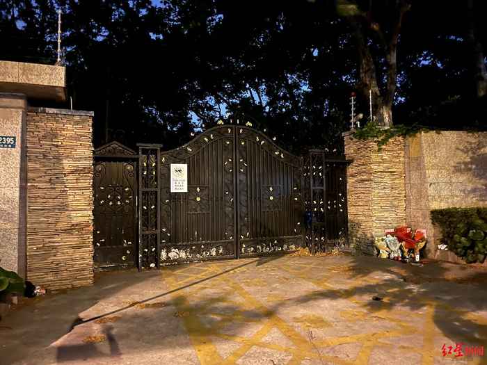红星新闻记者在上海动物园看到,动物园一处铁门前,仍保留着市民堆放的礼物。花束前摆放着苹果、竹笋、胡萝卜,一圈蜡烛摆成了爱心的形状。在花束上,插着国旗和“乐宝回家”卡片。
