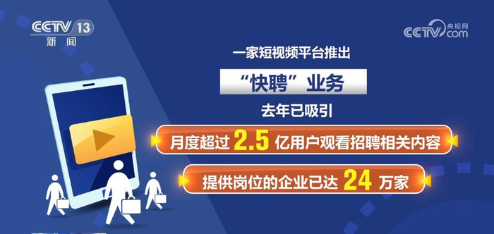 2022年,《中国蓝领群体就业研究报告》显示,2022年1月—10月,短视频直播招聘的比例增幅达12.4%。一家短视频平台推出的“快聘”业务,去年已吸引月度超过2.5亿用户观看招聘相关内容,提供岗位的企业已达24万家。直播带岗的形式也让“互联网招聘师”成为一个新的就业方向。