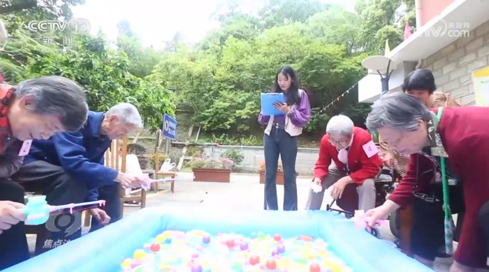 充气鱼池、塑料鱼、网兜、小桶,在福利院的大院里,一场趣味钓鱼大赛正在紧张进行。这个披肩长发、特别爱笑的裁判是老人们的“开心果”,也是福利院的“90后”社工朱小冉。和护理员杨爱红不同,朱小冉的主要工作通俗来说,就是怎么让老人们过得更乐呵。