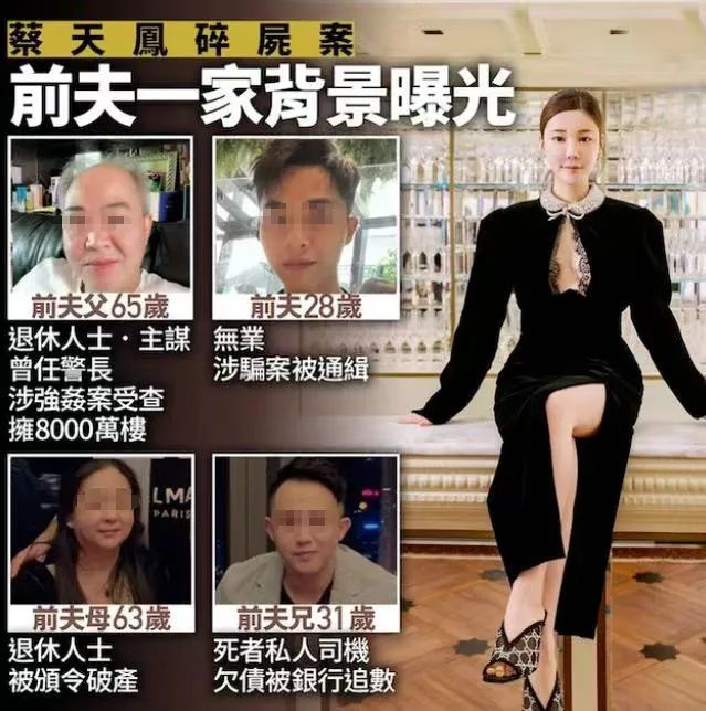 早前据港媒报道:今年2月21日,活跃于时装界的28岁名媛蔡天凤突然失踪,警方三日后(2月24日)在大埔大尾督龙尾村发现其遗体遭人肢解及曾被烹煮。