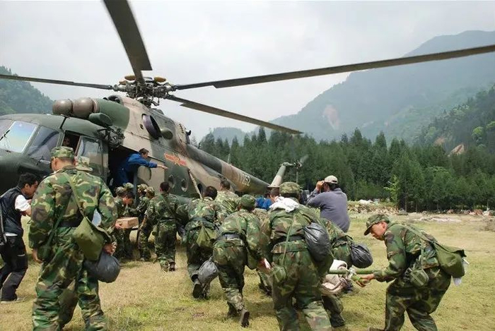 在汶川地震救援中,1800余名空军官兵奔赴成都彭州市银厂沟展开救援。6天时间里,官兵们共营救转移群众数千人,从废墟中挖出幸存者数十人。