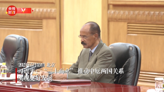 习近平指出,总统先生是非洲资深领导人,也是中国人民的老朋友,我对你来访表示热烈欢迎。中国和厄立特里亚传统友谊深厚。两国在厄立特里亚建国当天就建立外交关系。今年5月24日,我们将迎来两国建交30周年纪念日。中国人常说“三十而立”。我们要以此为契机,推动两国关系实现更好发展。