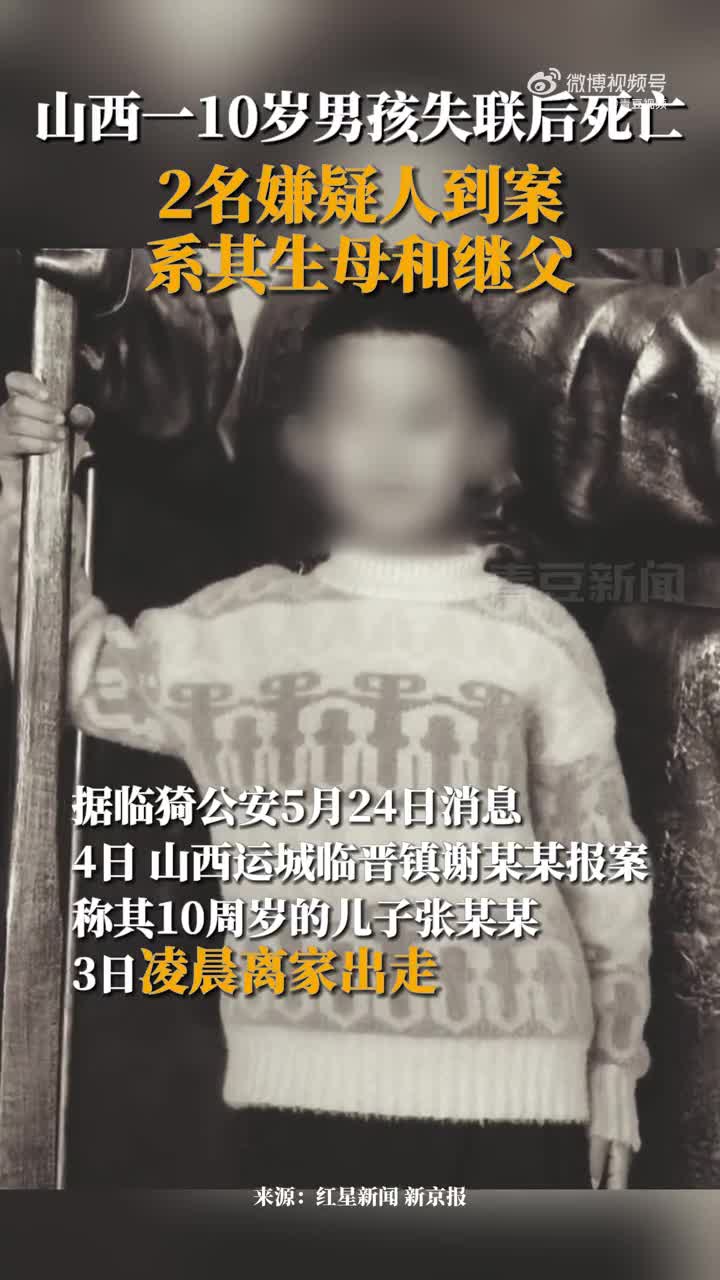 5月23日,失联20天后,山西临猗县一10岁男孩被发现身亡。奔流新闻记者从临猗警方获悉,目前两名嫌疑人已经被抓获。记者多方证实,嫌疑人为男孩生母和继父。