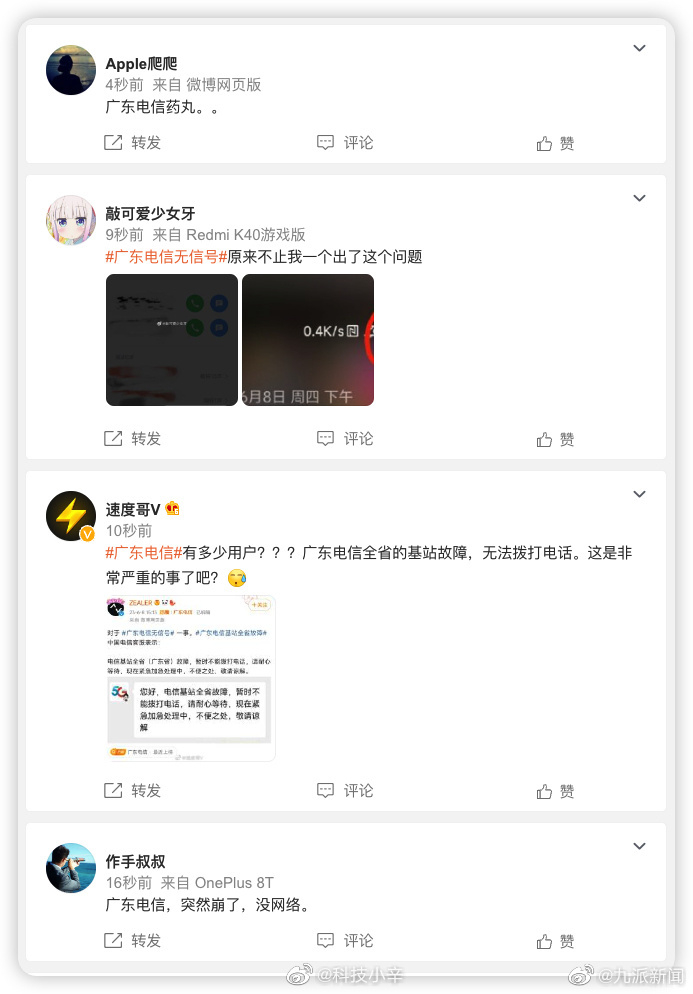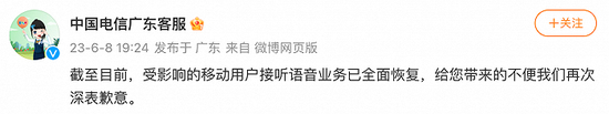 中国电信通报广东没信号:接听语音业务已全面恢复