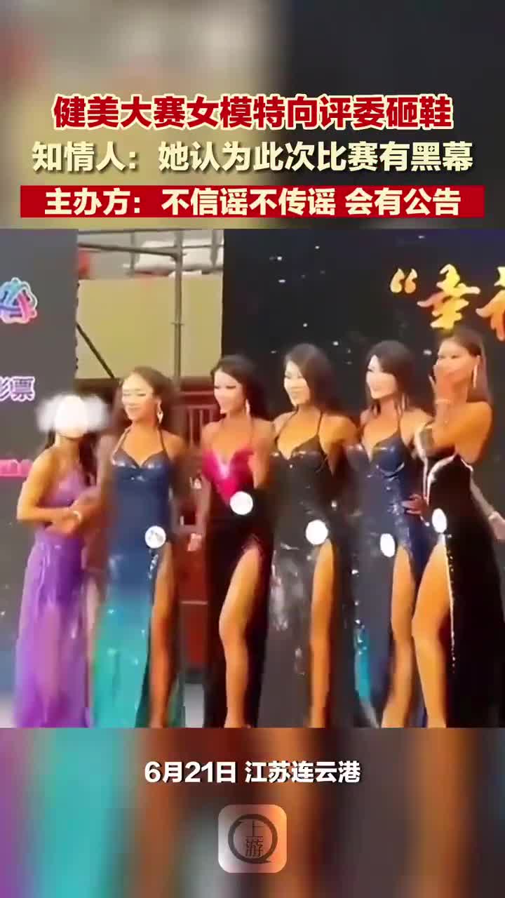 6月21日 江苏连云港 健美大赛女模特向评委砸鞋 知情人:她认为此次比赛有黑幕,主办方:不信谣不传谣会有公告
