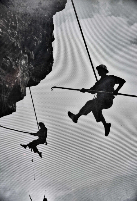 红旗渠工地上,最危险的就是凌空作业。