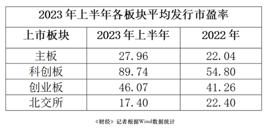 此外,主板与创业板的平均发行市盈率亦有所提高。唯一出现下降的板块是北交所。2022年上半年,北交所平均发行市盈率为22.40倍,而在今年上半年,已下降至17.40倍。