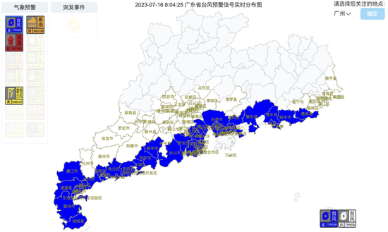 南部地区较大可能升级为台风蓝色预警信号;16日至18日广州可能发布暴雨和雷雨大风黄色及以上级别预警信号。