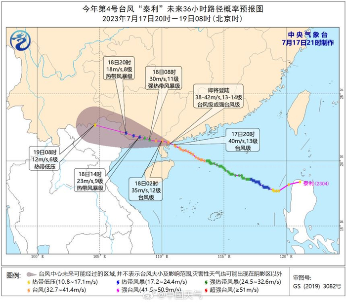 [今年首个登陆台风!#台风泰利巅峰期登陆广东湛江# 或将二次登陆]今天(7月17日)22时20分前后,今年第4号台风“泰利”以台风级别登陆广东湛江市南三岛沿海,成为今年首个登陆我国的台风,一举打破此前我国一个多月的台风空白期。预计“泰利”登陆后,将于18日凌晨移入北部湾,并有可能18日上午在广西沿海再次登陆。受其影响,18日广东西南部、广西南部、海南岛北部等地的部分地区将有大暴雨,局地特大暴雨,上述局地或伴有有雷暴大风等强对流天气。#台风泰利来袭#