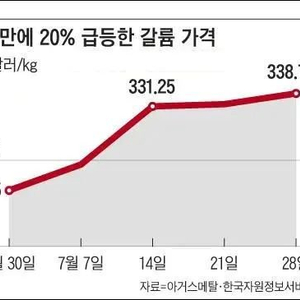 一个月内,镓价格暴涨20%,从每千克282.5美元上涨到338.75美元图:韩国《朝鲜日报》网站