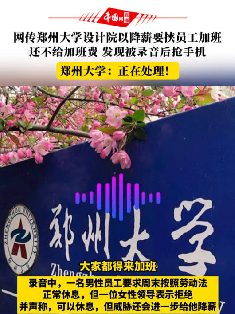 网传郑州大学一领导要求员工无偿加班还威胁降薪,发现被录音后抢手机,郑州大学:正在处理