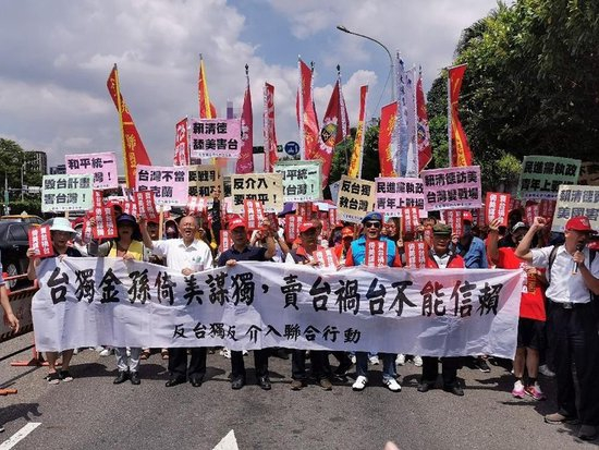 中国台湾网8月11日消息,今日,由60多个岛内政党和团体共同组成的“反‘台独’反介入联合行动”,动员600多人走上台北的凯达格兰大道(简称:凯道),喊出“反‘台独’、救台湾、反介入、要和平”的口号,抗议台湾地区副领导人赖清德借“过境”窜美谋“独”行径,要求重回两岸同属一个中国的“九二共识”,以维护台海和平安全。