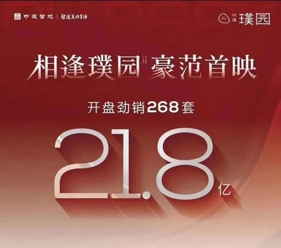 除了融创项目,据新京报报道,9月2日,北京的中建璞园首次开盘。其海报显示,项目销售268套,成交21.8亿元。截至周日,已累计认购300套以上。