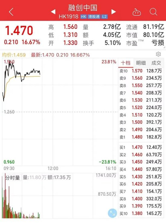 在资本市场,融创中国股价在9月4日以34%的涨幅领涨港股内房股;9月5日早盘,融创中国延续上涨态势,一度涨超23%。