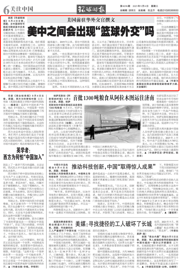 美国《华盛顿邮报》9月4日文章,原题:乡村篮球有可能成为转动美中关系的新乒乓 在中国社交媒体网站上热播的乡村篮球视频显示,成百上千名观众将简易篮球场周围挤得水泄不通,他们观看当地球员运球、扣篮和投三分。这种自发兴起的乡村赛事正吸引全球关注。NBA迈阿密热火队的吉米·巴特勒最近前往中国参加该赛事的一场现场活动。