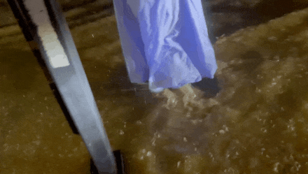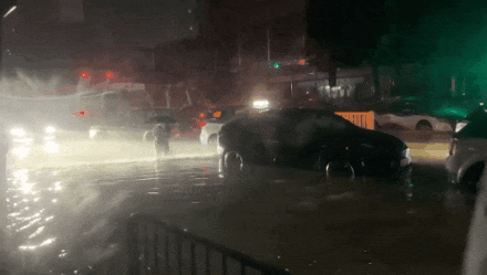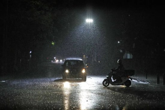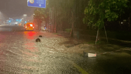 ▲8日凌晨2时30分,深圳福田区上步中路,市民冒着大暴雨回家。