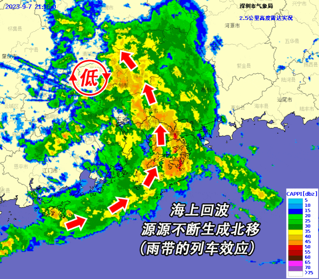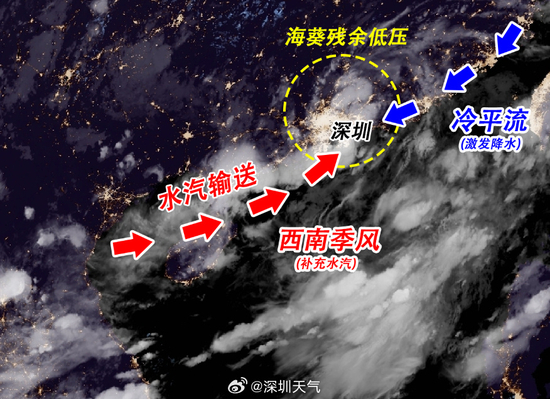 受台风“海葵”残余环流、季风和弱冷空气共同影响,深圳出现极端强降雨,普降大暴雨到特大暴雨。这次降雨具有强度超强、持续时间超长、强降雨范围超广的特点。最强降雨出现在罗湖、福田、盐田、龙岗等中部区域。造成此次极端降雨的原因:
