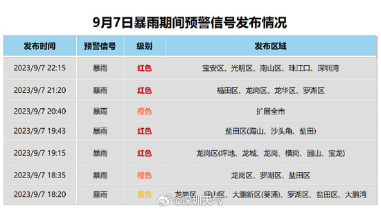 深圳市三防办通报,深圳凌晨3时15分开始调整排洪流量为120立方米/秒,此前为70~80立方米/秒。