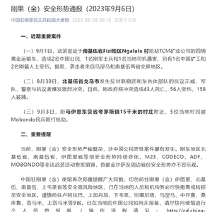 中国驻刚果民主共和国大使馆微信公众号9月8日发布《刚果(金)安全形势通报(2023年9月6日)》,通报了几起近期的重要案件——