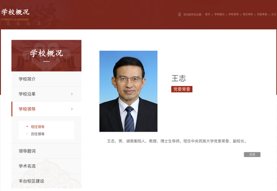 近日,中央民族大学官网“学校领导”一栏更新信息显示,曾任央视主持人的王志现已出任中央民族大学党委常委、副校长。