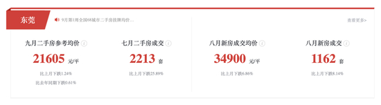 据房天下网站显示,东莞市九月二手房参考均价为21605元/平,八月新房成交价为34900元/平。