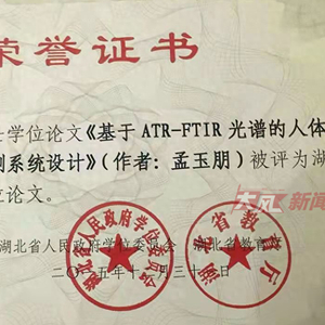 实习期间,他抽空查文献、做课题、写程序,2015年5月完成毕业论文《基于ATR-FTIR光谱的人体血糖远程无创检测系统设计》和毕业设计作品,顺利通过了本科毕业论文答辩。