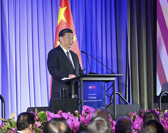 当地时间11月15日晚,国家主席习近平在美国旧金山出席美国友好团体联合举行的欢迎宴会。这是习近平发表重要演讲。