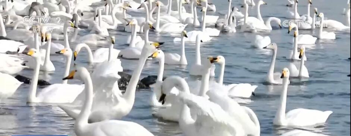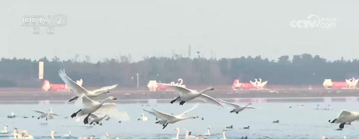 总台记者 柳栋:我所在的位置是山东荣成大天鹅国家级自然保护区,多年来这里形成了烟墩角、天鹅湖和樱花湖三处大天鹅的集中区。今年迁徙的1万多只大天鹅,目前九成以上已经抵达这里,仅我所在的保护区范围里就有超过6000多只。这里的工作人员告诉我,这些大天鹅是从3000多公里外的西伯利亚等地区长途飞行45天左右才能抵达的。飞抵后,大天鹅会在这里越冬,直到来年三四月份才会离开。因此,这里的大天鹅不再忙于练习飞翔和补充体力,而是从容不迫地开启了度假模式,游客们也可以近距离与它们进行互动。