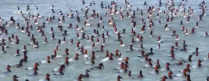 河南:上万只红头潜鸭飞抵三门峡黄河湿地越冬