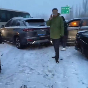 网络视频显示,一条临近山西忻州原平市崞阳出口的高速公路上,路面有明显积雪,多辆机动车发生碰撞,有车辆受损严重,弹出的安全气囊上有血迹,多人站在路面上拨打电话。