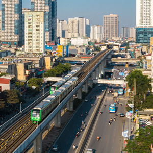 2021年12月1日,在越南首都河内,列车在吉灵-河东轻轨线上行驶。新华社发(中铁六局河内轻轨项目部供图)