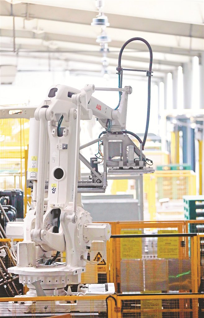 在浙江省宜兴市的一家粮食加工企业,码垛机器人让车间的效率大幅提升。“码垛机器人可以根据预先编排的程序轻松码垛,协助工人完成重复而繁重的工作,自动进行分排、成堆、移堆、提堆、下堆、出垛等步骤。当大米的尺寸、体积和托盘的外形尺寸发生变化时,只需要在触摸屏上稍作修改即可。”企业负责人路芳芳介绍,“引进码垛机器人后,可以达到每分钟10—15次的码垛速度,减少了作业过程中的货物损坏和混乱问题。”