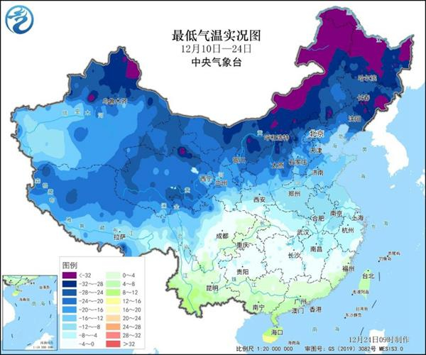 冷空气持续影响我国,气温0℃线南压至华南北部。12月中旬以来,共有3次冷空气影响我国,分别出现在10—11日、13—16日、18—21日。13—16日冷空气达到寒潮强度,也是入冬以来最强寒潮,西北地区及中东部地区气温普遍下降6℃以上,出现10℃以上强降温的国土面积约327万平方公里,占全国国土面积的34%;17日早晨,气温0℃线位于陕西南部、湖北中部、江西北部、浙江中部一带。18日以来,较强冷空气影响我国中东部地区,气温继续下降,并维持明显偏低态势;24日早晨气温0℃线南压至华南北部、贵州南部、四川南部一带。