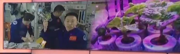 除了航天医学实验,空间植物栽培实验也伴随了航天员的空间站生活,神十七航天员目前在太空种植蔬果所使用的“太空菜园”装置,是由中国航天员科研训练中心新设计的第二代空间植物栽培装置。2022年,神十四航天员蔡旭哲第一次在中国空间站培植出了生菜,并与队友们分享了劳动成果。