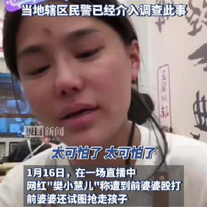 #警方介入网红樊小慧称被前婆婆殴打#[千万粉丝网红“樊小慧儿”称被前婆婆殴打,警方已介入]1月16日,在一场直播中,某短视频平台网红“樊小慧儿”称遭到前婆婆殴打,前婆婆还试图抢走孩子。17日上午,极目新闻记者了解到,辖区警方已经介入处理此事。